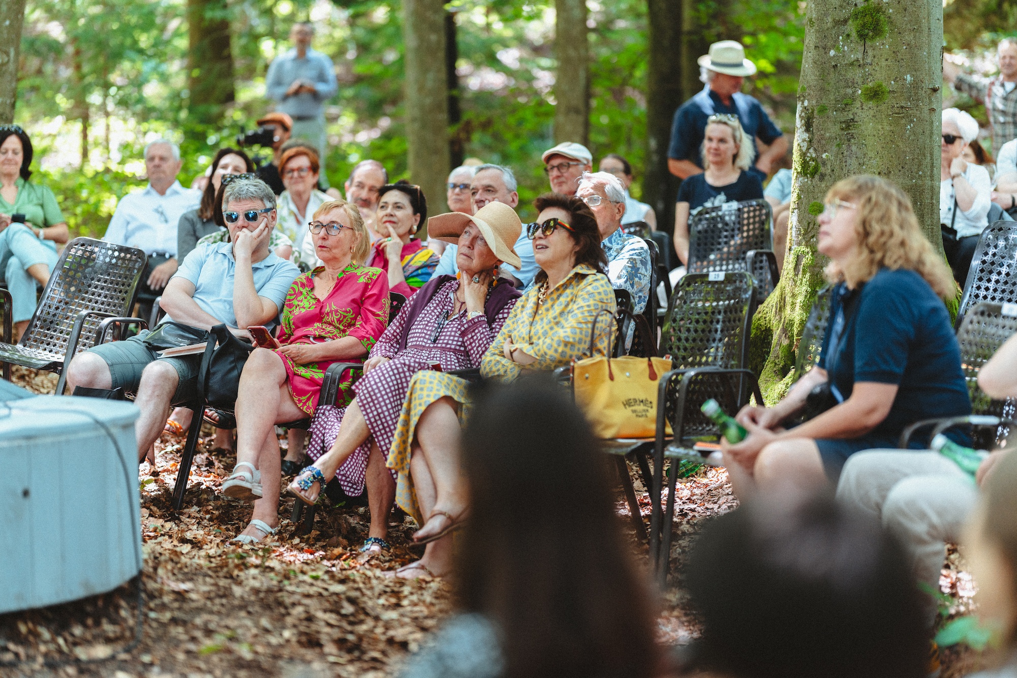 Den Wald im Zeichen des Staunens zum Klingen gebracht...und so sitzt man entspannt unter dem Blätterdach und lässt sich fallen in die vielstimmig kontemplative Poesie einer Klangreise zwischen Geigenklängen und Vogelgezwitscher.Kronen Zeitung, 9. Juli 2023